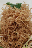 Deep-fried taro silk with Chinese vinegar (金絲珠豆) - a last-minute decision to order something "interesting". This looked a little different from the picture on the menu, but never mind. I figured the ladies would enjoy the taro… Basically this was a tower of shredded taro, together with some raw onions and peanuts, drizzled in a light vinegar sauce. Pretty yummy, actually… but I seemed to have enjoyed it more than the ladies, which I find a little odd.