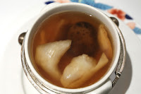 Double-boiled fish maw clear soup with whelk and black mushrooms (花膠北菰燉螺頭雞湯) - I always love a chicken soup cooked with ingredients like whelk, but I really didn't care for the fish maw today... as they were a little fishy and pungent.