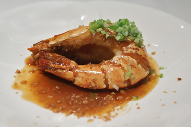 Pan-fried king prawn with soya sauce (頭抽煎大花蝦) - such a beautiful prawn, simply pan-fried in premium soy sauce with a little diced spring onion. Classic and perfect.