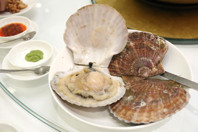 Senpai is back in town, and I found myself having dinner at Heichinrou (聘珍樓) in Central again with a group of old friends. We all used to work together for the same firm many years ago - well, all except ILove Lubutin - and we were supporting Senpai's efforts to support Kamaishi (釜石市). I had previously attended a dinner here focused on the swimming scallops from the area, and I was happy to come back again for some more.