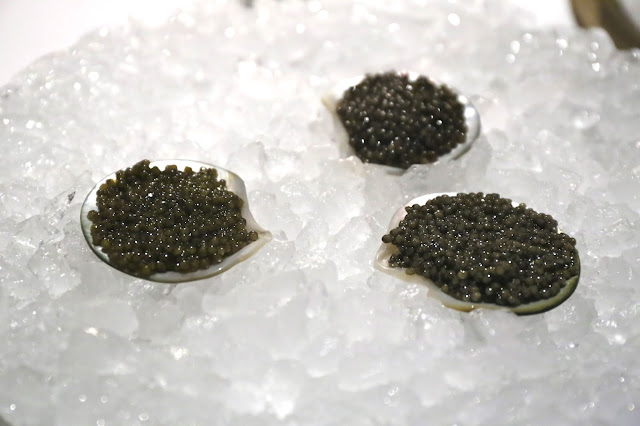 Next Uwe brings out the works for the sturgeon caviar, again sourced from Lake Qiandao (千島湖) in China. Tonight we had three different types:
