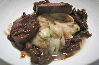 The venison was very gamey, and my friend had a little trouble stomaching it. I, on the other hand, love gamey meats... and the chocolate really worked well to soften the blow of rare game. But there was no doubt that this was a heavy dish, and certainly not "vegetarian" and light!