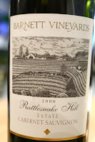 2000 Barnett Cabernet Sauvignon Rattlesnake Hill - very vanilla, oaky, minty, lots of coconut butter, along with some pencil lead. Drinking very nicely now.
