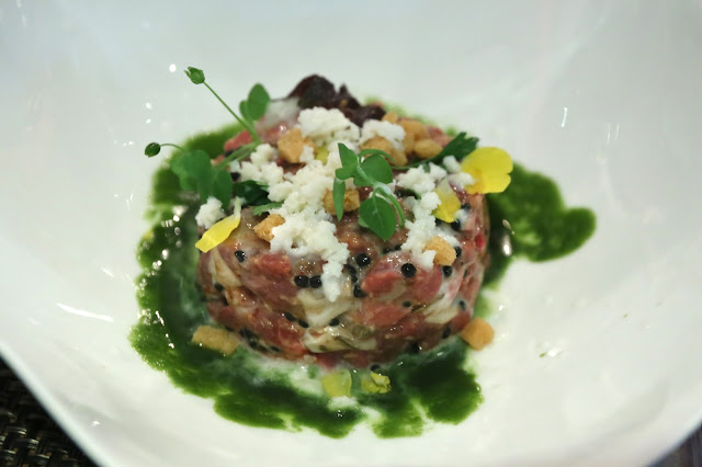 Prime beef tartare, Avruga, oyster dressing, raifort and herb granité - not bad at all, especially the mix with oysters and Avruga. Pretty AND tasty.