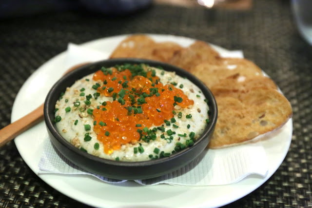 Lentil hummus, croûtons - this was pretty nice and smooth, almost airy. Loved it with the salmon roe.