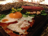 Bacon and egg: Spanish, 18 weeks, suckling pig, organic, duck egg, herbs, truffle jus - I've been wanting to try out this for weeks now, and finally got my chance tonight. Yes, I am having breakfast at 8pm… and I'm lovin' it!!! Not exactly a light way to start the meal, though...