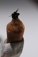 Salmon and caviar cornet - yummy. A little bit of Thomas Keller.