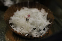 But the highlight of the dish for me was something totally unexpected. There was a scattering of black "dirt" around the roots of a single leek, as if the leek had just been uprooted and placed on the plate. The dirt was actually charred leek ground into powder, very much like what I found at Les Créations de Narisawa. Once again Uwe was displaying a little of his playfulness, and I'm a total sucker for that!