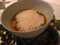 Spring: essence of minestrone - I started to smell trouble when waitstaff started laying down spoons for each of us, when I clearly did not order anything that required this utensil… Uwe explained that he was trying out some dishes for the new menu, and wanted to know what we thought. I guess there are worse things in life than being lab rats for a chef with Michelin stars to his name…