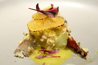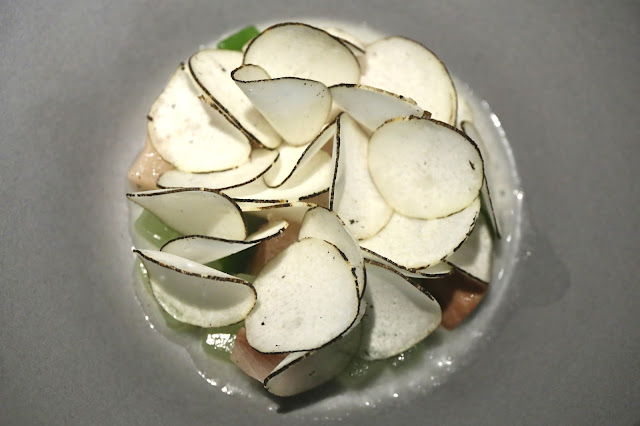 2013 Matthieu Barret Petit Ours Brun - forest notes with cool fruit, with a hint of ripeness.This was a very enjoyable evening. The food did not disappoint our high expectations, and I am told that the food is steadily improving with time. Chef de cuisine Alain Huang - who has spent time in the kitchens of Justin's Signature, STAY, Maaemo, and Les Crayères - is clearly doing something right. I look forward to coming back.