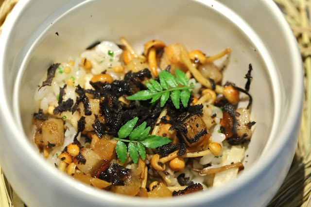 "Taiwan rice", pork, truffle ("台灣"米, 豬肉, 松露) - a more premium version of the Taiwanese minced pork rice (滷肉飯), with delicious cubes of pork belly, enoki mushrooms, and black truffle shavings. No less than comfort food for many of us, I was really happy to see this in front of me. The ceramic pot had been cooked so that the rice on the bottom were charred into rice crispies, while some of the pork fat had melted and been soaked up by the rice. This made me such a happy camper.