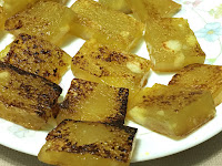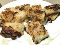 While cutting the pudding into chunks for pan-frying, mom noticed that the consistency was softer. These turned out to be pretty tasty.