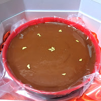 As we cut open the plastic package to take out the pudding, we noticed that the few pieces of gold leaf had disappeared... It turns out that as the pudding warmed up, the gold leaf ended up sticking to the plastic packaging! Oh well, not that I really wanted to eat gold leaf, anyway...