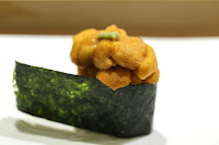 Sea urchin (雲丹) - interestingly, the chef used a mix of sea urchin that comes in a box (which is how most of the sea urchin that sushiyas use come in) and sea urchin that is transported in salt water (塩水雲丹).