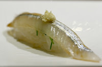 Pole-and-line caught horse mackerel (釣り鯵) - with a dab of minced ginger on top. Very nice.
