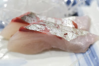 Horse mackerel (鯵) - I don't understand the double-cut when it comes to sashimi. In reality this was pretty veiny.