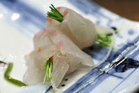Red sea bream (鯛) - with spicy grated radish and young scallions rolled inside.