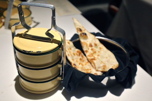 OK, so chicken tikka masala isn't exactly "traditional" Indian food, but it's something that many of us are familiar with and can recognize. It's got some nice tangy flavors. And the naan... just looove the crunch I felt when I bit into it. Can I take two tiffins to go, please?