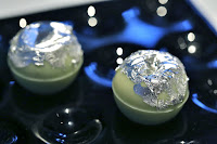 Chocolate chilly bomb - my favorite snack from the pop-up. Gaggan's version of pani puri, with coriander water, cumin, ginger, chili, and other spices injected into the hollow white chocolate sphere, then sealed with silver foil. This was delicious, as the richness and the sweetness of white chocolate helped coat the tongue and tempered the spices.