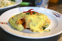 Crab meat omelet (ไข่เจียวปู) - once you get past the sticker shock and order it, you'll immediately see why the price is completely justified. This is the THB 800 version, and it's pretty sizable. The five of us ordered TWO of them.