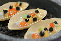 These clam tarts were made with Chinese fermented black beans (豆豉), clam juice, coriander, and pickled chili. Tasted a little salty at first.