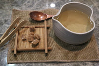 The abalone from local waters was indeed very tender. It sat on a bed of risotto that wasn't cooked with any cream (interesting, because this novice cook who burns his food doesn't remember adding any cream to any risotto he has ever cooked...) because the creaminess was meant to come from the fish cum... which was, of course, absent from my plate at my request. There's also a puddle of red onion consommé to provide more flavor. Garnished with sansho leaves (木の芽), perilla flowers, and wolfberries. Delicious.