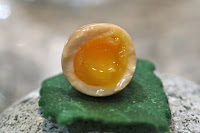 The quail eggs pickled in Japanese vinegar and smoked. Nice and runny yolk.