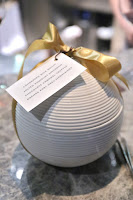 The petits fours came in a ball-shaped container with stacked trays, opening up to reveal three different layers: