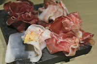 First came the charcuterie platter. Yes, I went straight for the lardo... and was surprised that the air-dried beef was particular tasty with rich flavors.