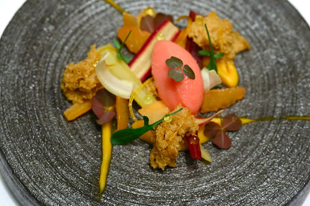 So the two of us walked in, got seated, and it wasn't long before Richard very kindly came to greet us. We had looked over the menu and found the current degustation menu pretty interesting, but as I follow three of Amber's chefs on Instagram, I've been seeing a bunch of delicious-looking dishes on my feed lately. After getting the nod from Hello Kitty, I asked Richard to send us whatever he fancied, without "a foot on the brakes" in terms of quantity.