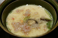 Steamed egg custard (茶碗蒸し) - this came with the usual shiitake mushroom, fish, fish cake (蒲鉾), and shredded crab meat. Unfortunately the crab meat had the texture of steel wool... but the yuzu (柚子) fragrance was lovely.
