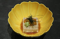 Sesami-tofu on sea urchin top (前付:胡麻豆腐 雲丹) - a good way to start. The sesame tofu was rich and tasty.