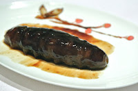 After sipping on the very fragrant welcome tea, we were presented with an amuse bouche of marinated cucumber with shredded spring onions the raspberry pearls. The sesame oil was very fragrant, and the spring onions were dipped in spicy chili oil, while popping the raspberry pearls released a little bit of sweetness to temper the heat.