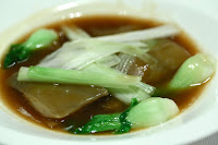 Stewed turtle skirt with Shandong leeks (香蔥紅燒山瑞裙邊), Shandong cuisine – I don’t get the chance to have turtle skirt often, and so we were a little excited to see this on the menu. Unfortunately, there were only three thin slices of the soft and gelatinous skirt – a far cry from the thick and satisfying slices we’ve had at our favorite private dining venue. The flavors were also a lot milder here – with very thin slices of bamboo shoots and some spring onions to round out the dish.