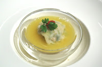 Shredded Chicken and Vegetable Dumpling in Superior Pottage (皇湯雞肉蔬菜餃) - interesting how they've taken a very homey dish - the humble meat and vegetable dumpling - and tried to make it more "fine dining" by serving just one... and have it sit in a small bowl of rich and intense chicken broth. I do love that broth, though.