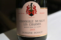 2005 Ponsot Chambolle-Musigny 1er Cru Les Charmes - decanted for about an hour prior to serving. Nice fruit, with animal and leather notes. Nice acidity here but obviously still tannins here. Not bad but a little young.