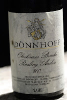 1997 Dönnhoff Oberhäuser Brücke Riesling Auslese Goldkapsel from half-bottle - huge nose of petrol, grapey, muscat. Not too sweet on the palate and there was enough acidity to balance it all.