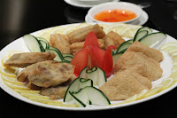 We started with a trio of Chiuchow appetizers (潮式三彩盆), which included deep-fried Puning tofu (酥炸普寧荳腐), country-style chicken roll (家鄉野雞卷) and deep-fried Bombay duck (椒鹽九肚魚).
