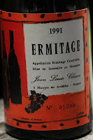 1991 Chave Cuvée Cathelin - an awesome wine from start to finish. Floral notes hit first, along with sweet fruit. Later on the animal and leather notes came out. I guessed it was La Mouline based on the floral notes.