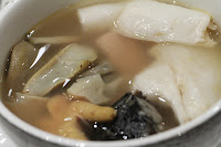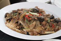 I didn't want to have shark's fin, so I changed to double-boiled soup with fish maw and conch (花膠螺頭老火湯). This was really delicious with the addition of chunks of lean pork and chicken feet.