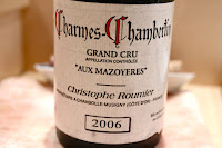 2006 Christophe Roumier Charmes-Chambertin aux Mazoyeres - opened for an hour prior to serving. Lovely sweet fruit here with nice forest notes, and the wine gained weight in glass. Nice balance but lacking concentration.
