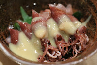 Firefly squid with white miso (ほたるいか酢みそ) - another seasonal item I can't get enough of. Very, very delish... especially with that sweet white miso (味噌) sauce. Served on a bed of wakame (若布) seaweed.