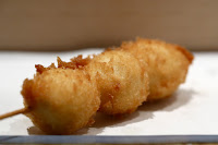 Scallop with tartar and salmon roe (ほたてタルタルいくら) - this was DA BOMB. Somehow I missed out on this last time, so I made sure I got one tonight. That delicious whole scallop was breaded and deep-fried, then sandwiched between two layers of tartar sauce with egg white, and finally topped with some salmon roe. The salmon roe had really "crunchy" skin that popped with surprisingly strong force.