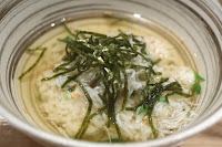 Ochatsuke with whitebait ( しらすお茶漬け) - when I found out that they put seasonal whitebait (しらす) over the ochatsuke (お茶漬け), I just had to have some... but shared a bowl with V. Simple, straightforward, delicious.