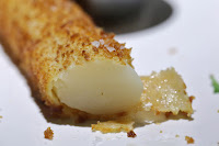 These had just been deep-fried and were still piping hot, and one could see steam rising from the asparagus once it was cut open.