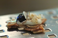 Smoked and charred red bell peppers, soya wasabi mousse - the peppers were pretty tasty - with crunchy charred exteriors crumbling to reveal the true flavors inside. The accompanying mousse was a complete FAIL. It was just so incredibly salty... to the point where one has to wonder why the chef thought it necessary. It reminded me of my experience at Alinea, where there were courses which compelled me to reach for a drink in order to wash away the saltiness on my tongue.