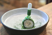 Tom yum with coriander tempura, deep-fried curry leaves, coconut - this was kinda interesting... I could definitely taste the lime, coconut, and a little bit of spice from the tom yum cream.
