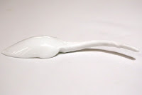 A pretty porcelain spoon was laid on the table in preparation for the pre-dessert...
