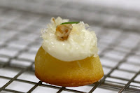 Cantal cheese cake with candied walnuts - contrasting savory flavors from the cheese on top with a sweet sponge cake bottom.