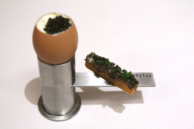 Egg/egg/egg: scrambled organic egg, Le Puy lentils, truffle 'mouillette' - while many of the other tables were getting Chef Julien's smoked eggs, I'm glad that we got something different that I haven't tried before.